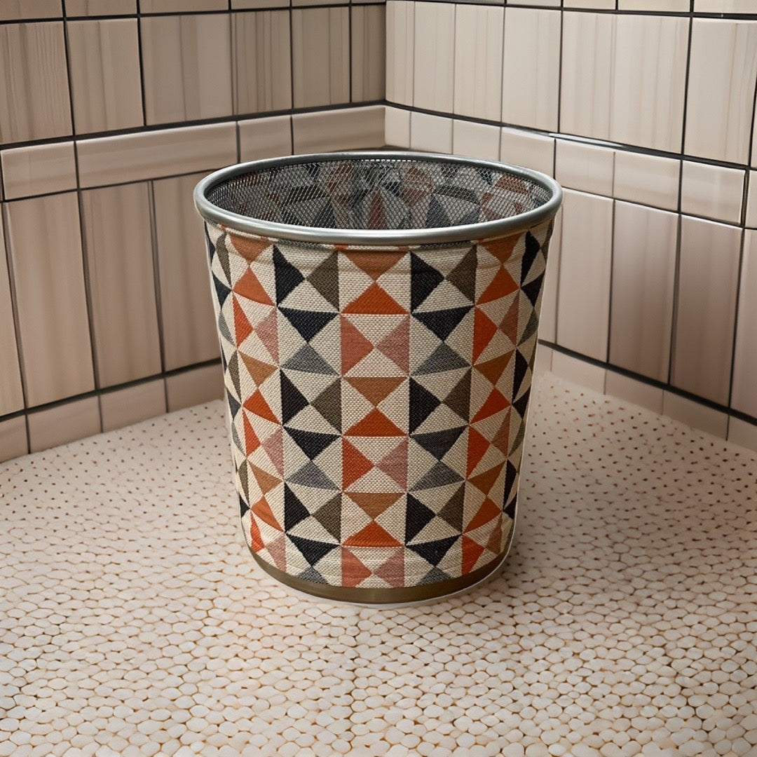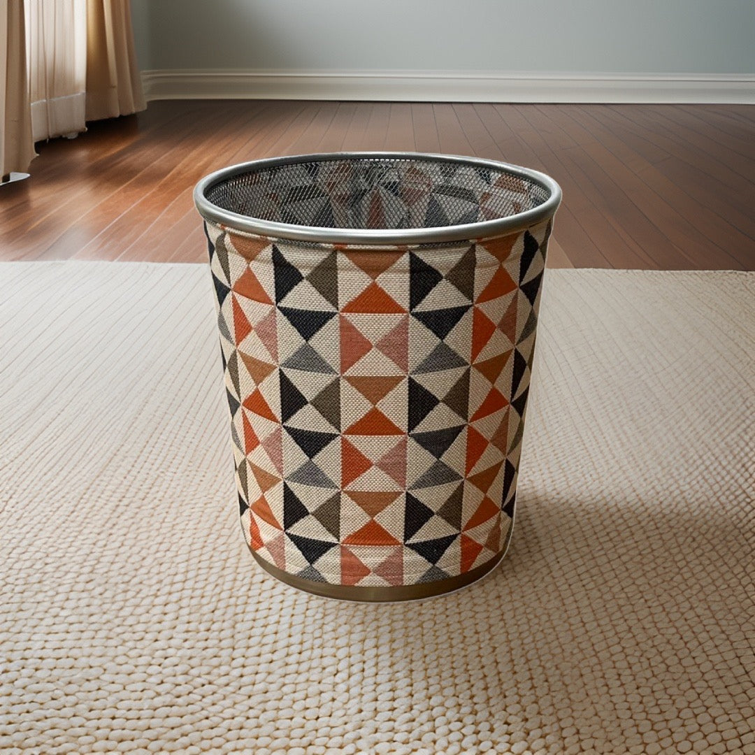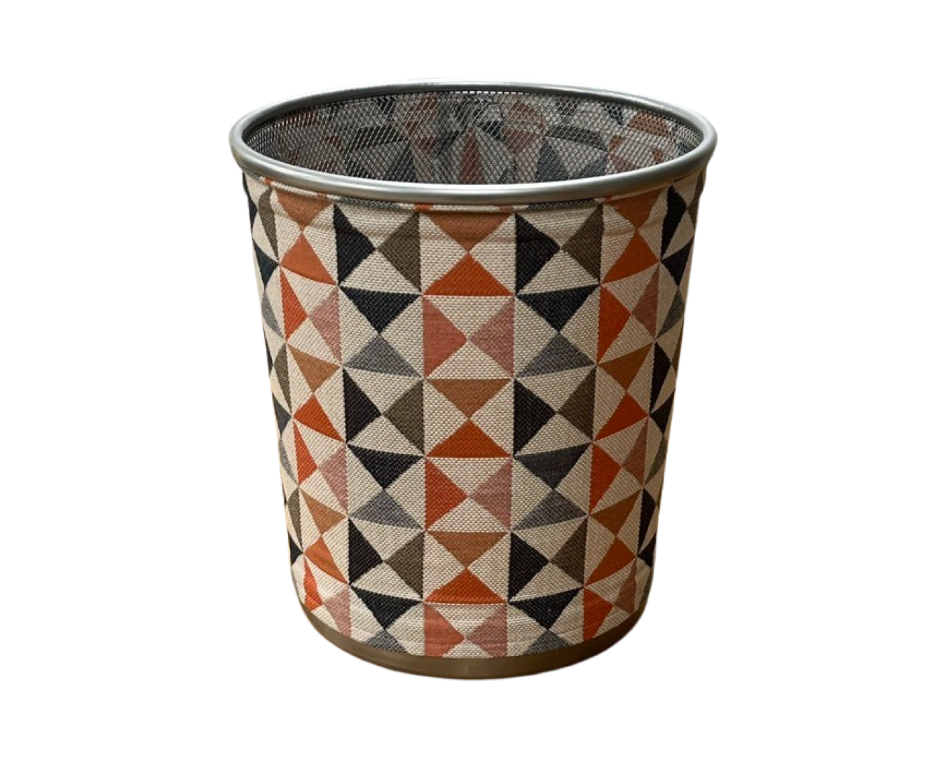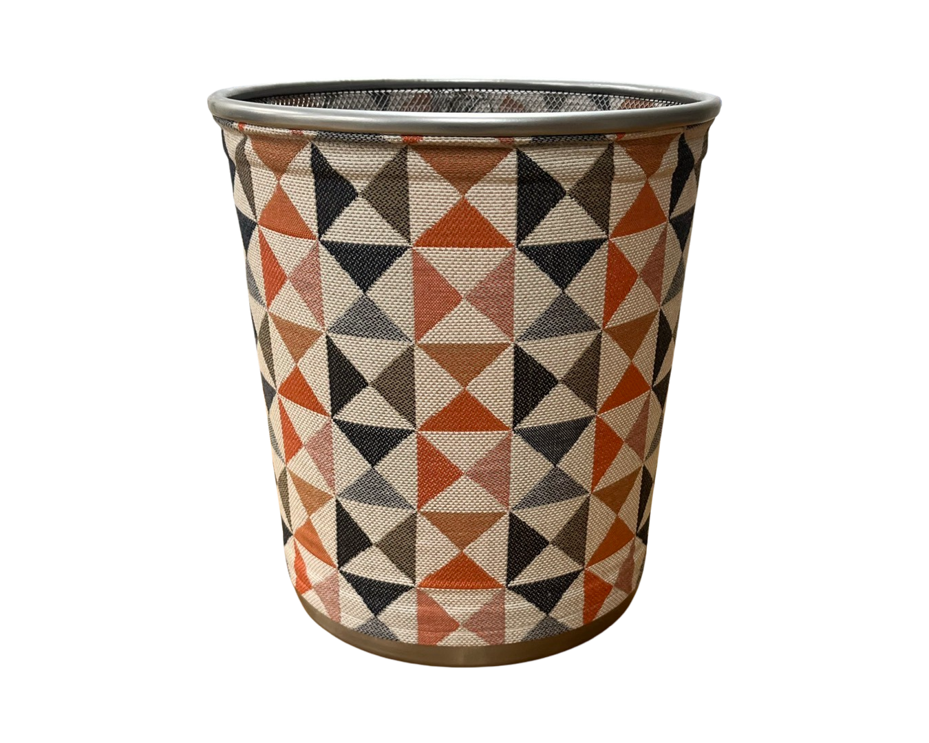 Tan, Salmon, Navy, and Grey Decorative Waste Basket