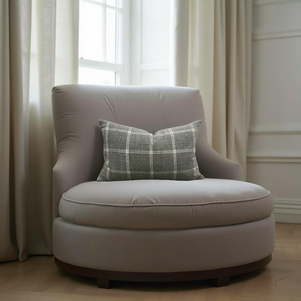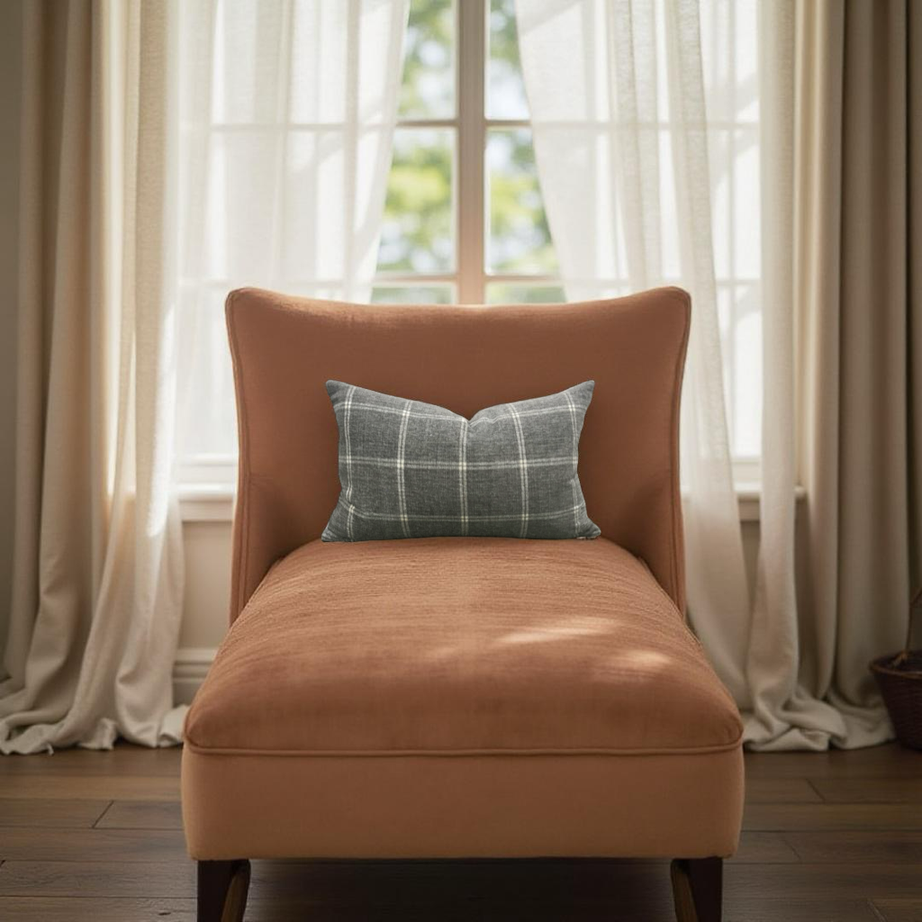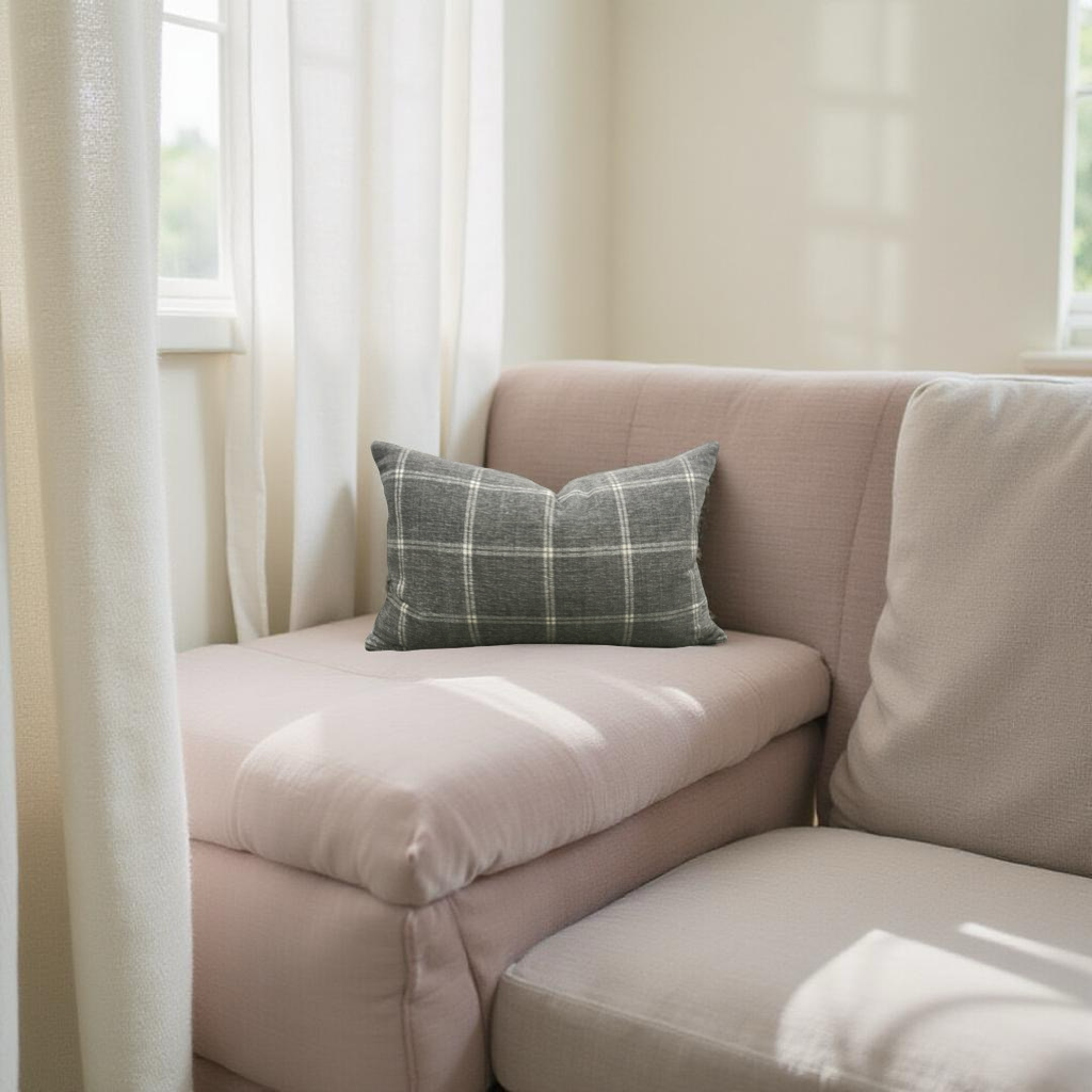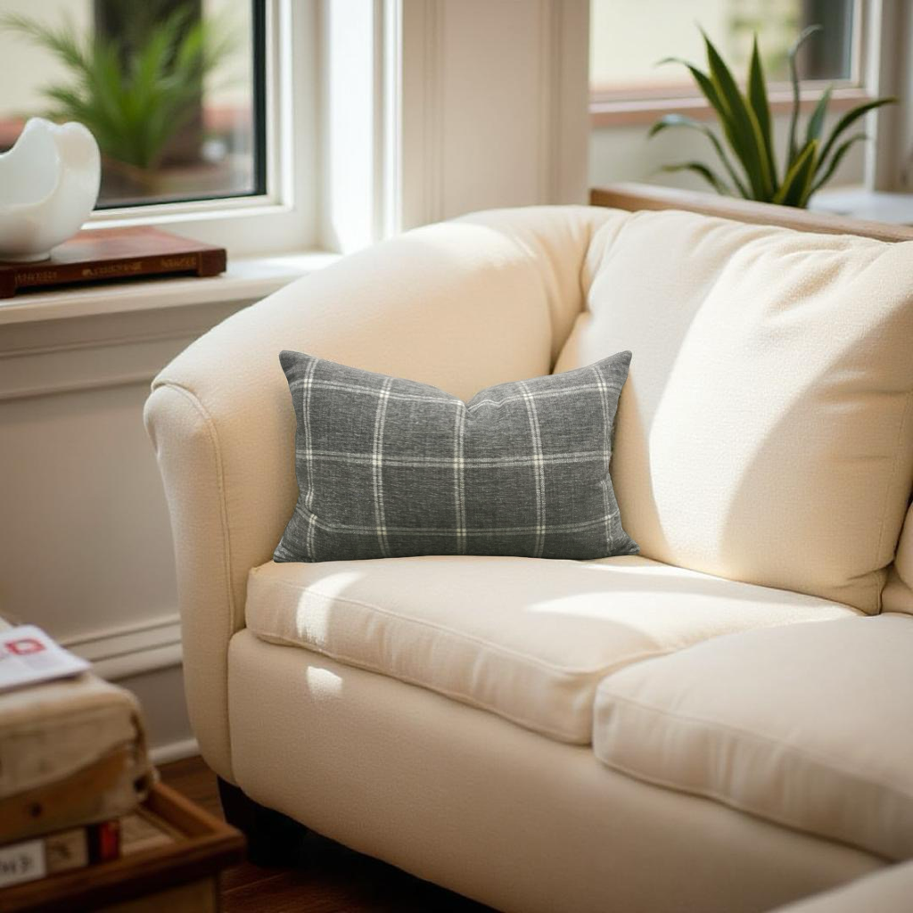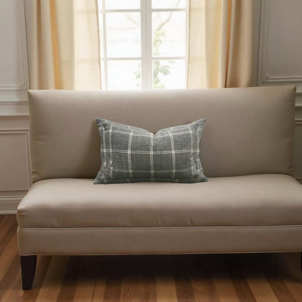 Taupe Grey Check Patterned 12X18" Knife Edge Decorative Lumbar Pillow