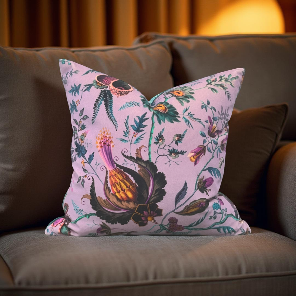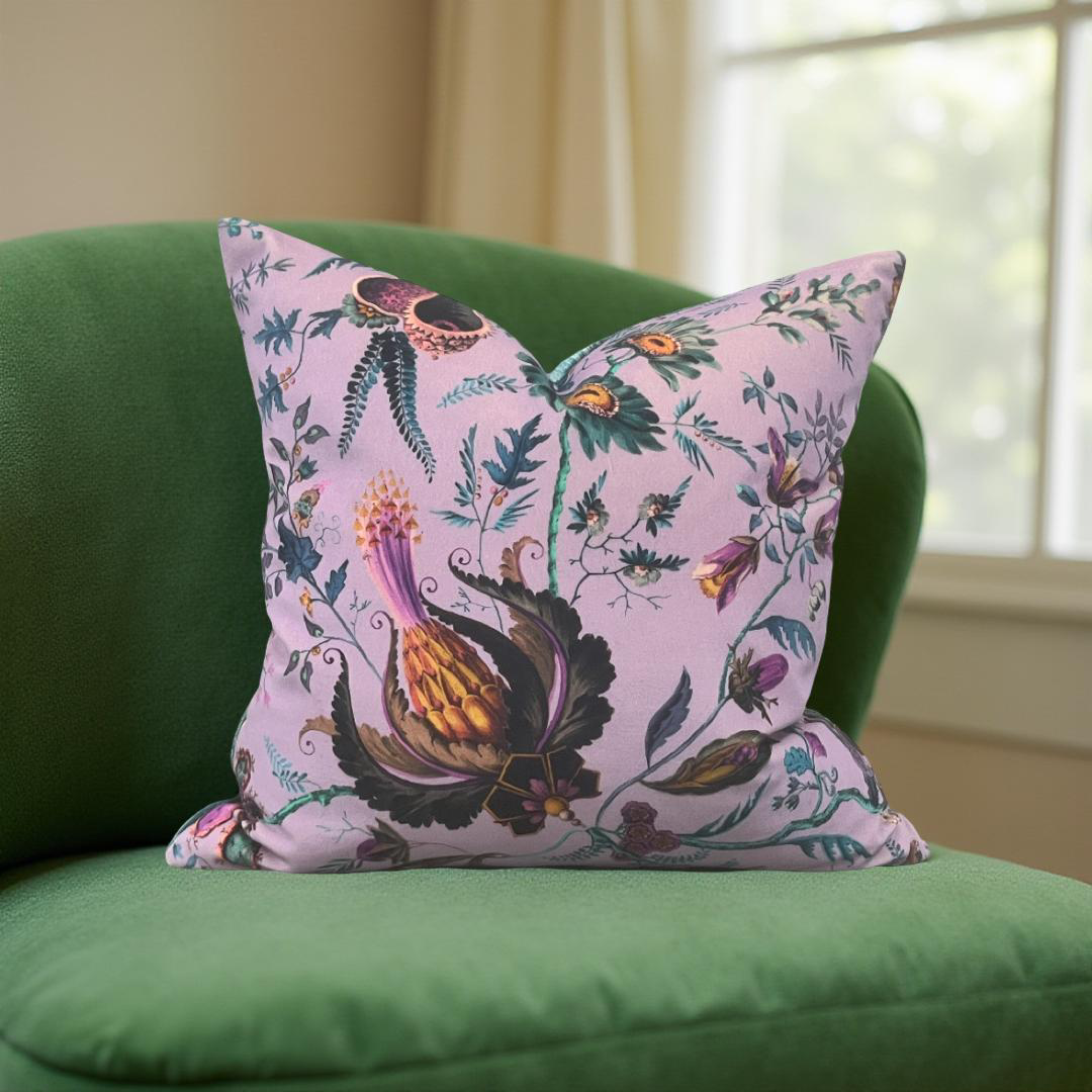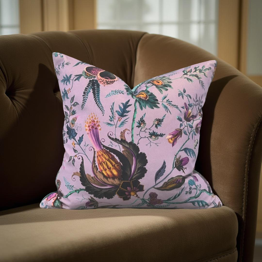 Wonderland Floral Amethyst Lapis 18x18" Knife Edge Decorative Throw Pillow