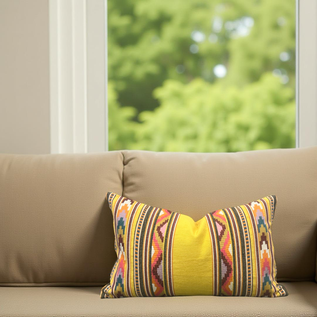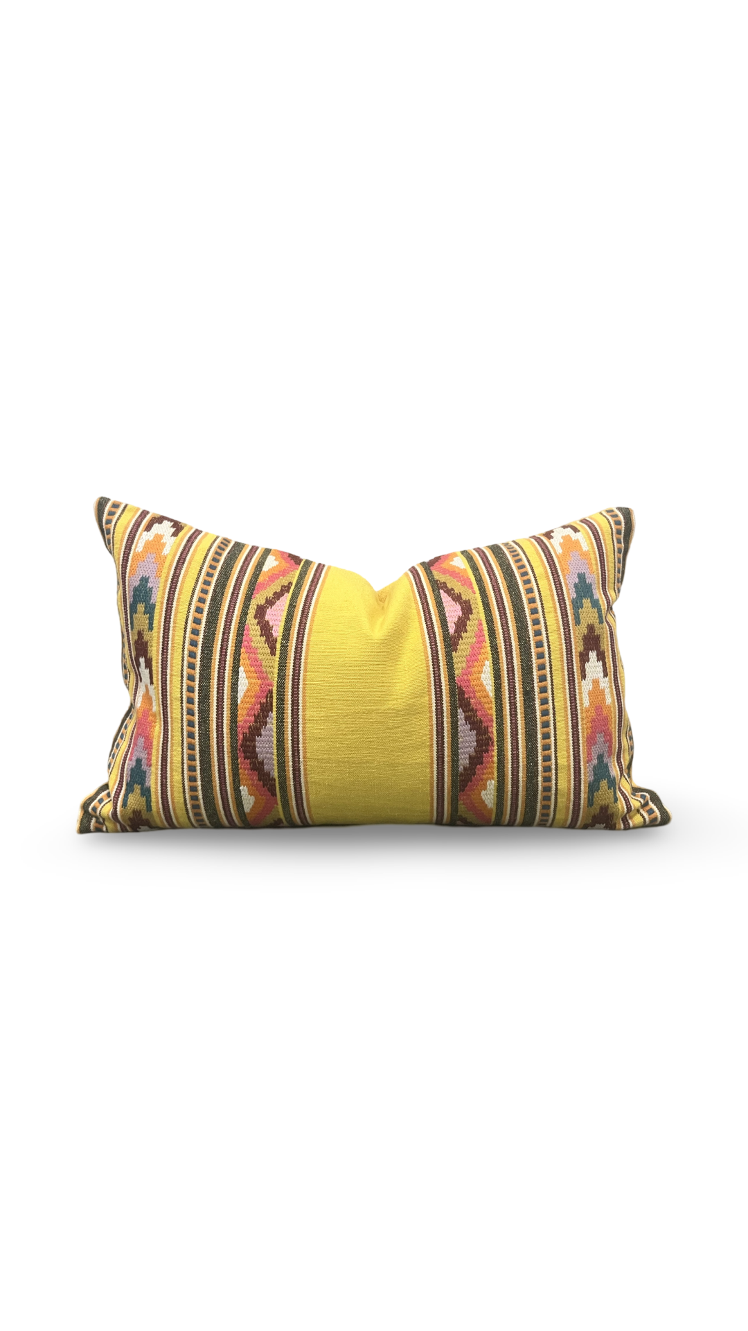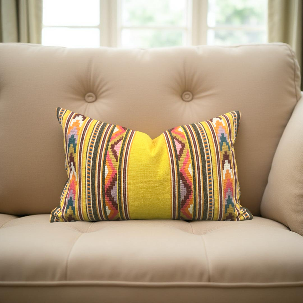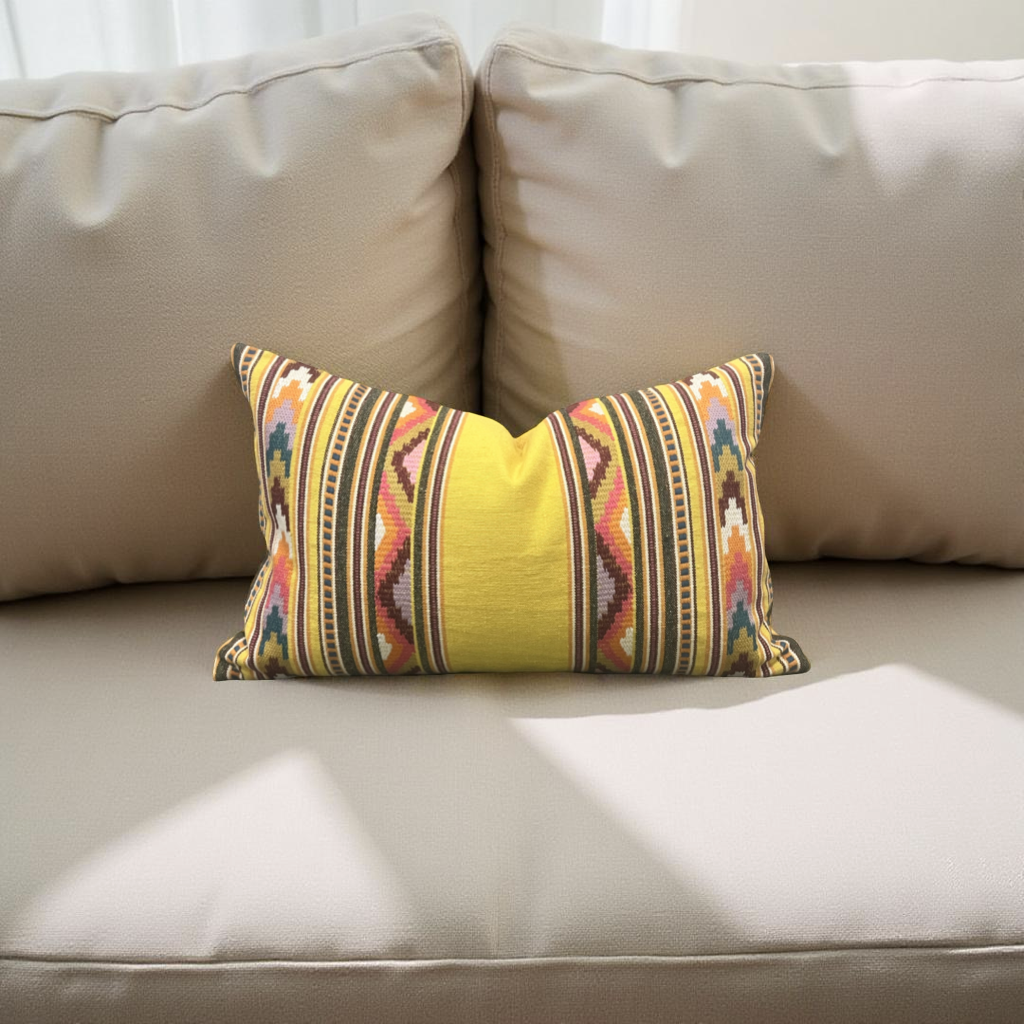 Zarzuela Stripe Embroidery Saffron 12X18" Knife Edge Decorative Lumbar Pillow
